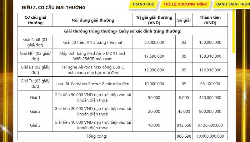 - Thông báo trúng thưởng: Thông tin trúng thưởng sẽ được cập nhật và công bố công khai trên website chính thức của chương trình.