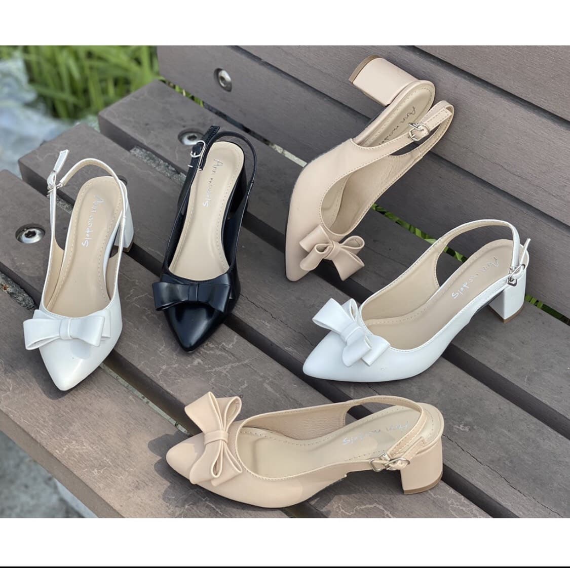 Cao gót đế vuông có nhiều kích cỡ: 2p, 5p, 7p,... và kiểu dáng khác nhau: kiểu đính nơ nhỏ, đính nơ ngang, quai trơn,....