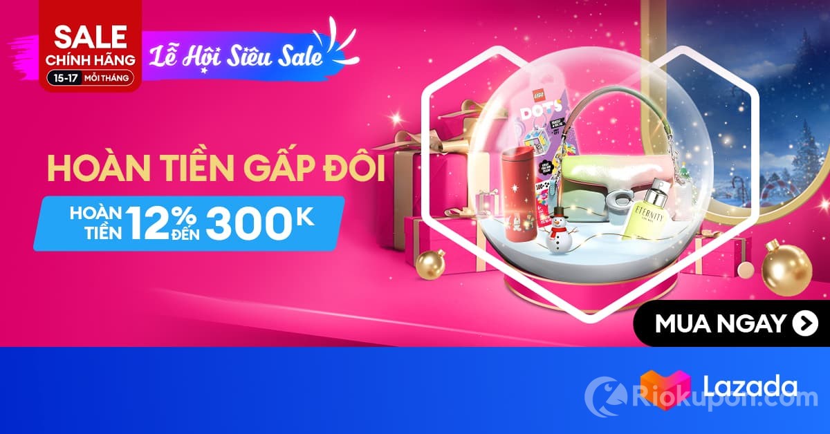 Hoàn tiền Max gấp đôi vẫn được áp dụng cho đợt sale giữa tháng Lazada 15.12 này. Bạn sẽ được hoàn 12% với giá trị hoàn tiền tối đa lên đến 300k