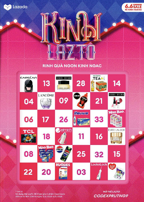 Sự kiện lô tô quốc dân lần này được Lazada tổ chức mang tên “Kinh LazTô". Đây là chuỗi chương trình giải trí trực tuyến được tổ chức nhân dịp đại tiệc mua sắm Sale 6.6. Lần đầu tiên, một sự kiện lô tô kết hợp mua sắm online được thực hiện với quy mô hoành tráng, mang đến trải nghiệm độc đáo cho người xem - vừa được giải trí, vừa có cơ hội săn quà khủng và deal sốc!