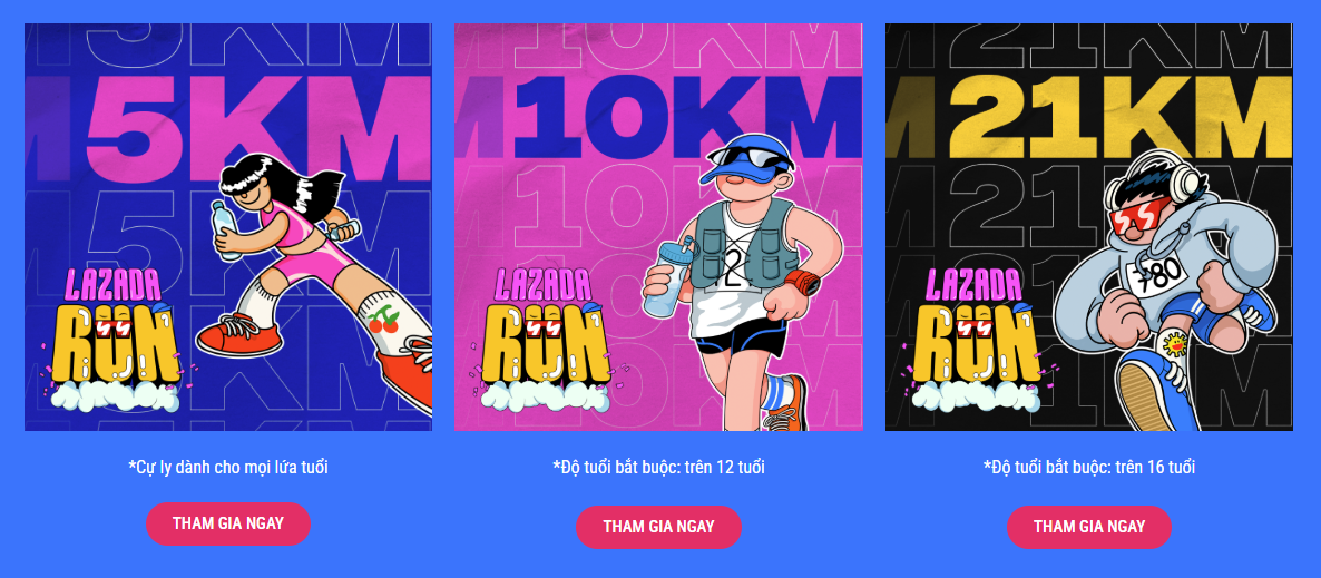 Lazada Run 2025 sẽ có cự ly chạy, tương ứng với level từ thấp tới cao gồm 5km, 10km và 21km.