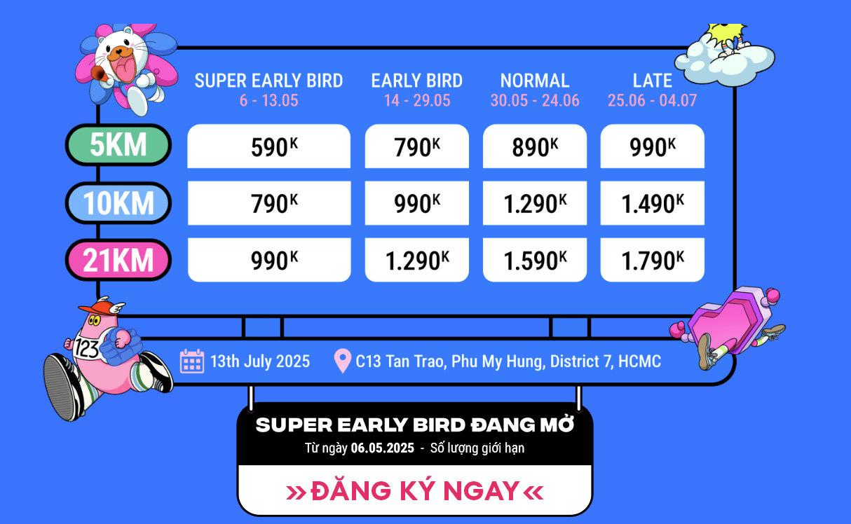 Giải chính thức diễn ra vào ngày 13 tháng 7 tại khu đô thị Phú Mỹ Hưng và mở bán vé tham dự từ tháng 5, nếu bạn quan tâm thì có thể tham khảo mua vé sớm TẠI ĐÂY