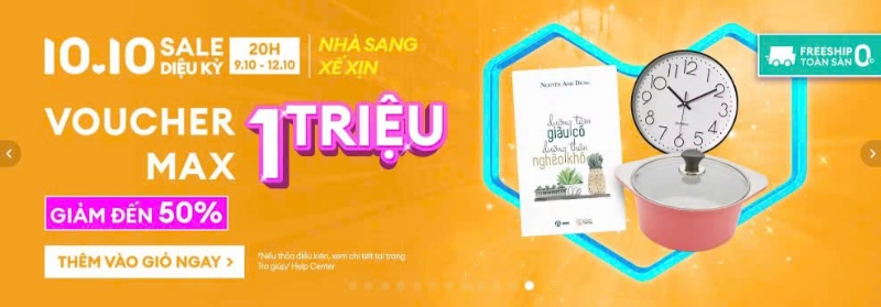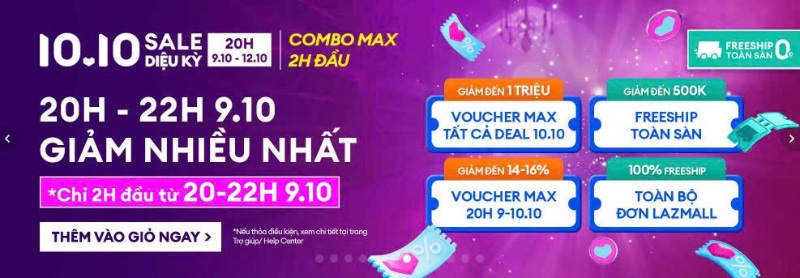 - Đặc biệt, khung giờ vàng từ 20h - 22h ngày 09/10 là thời điểm “vàng” để săn deal giảm sâu, mã giảm giá và voucher cực hot.