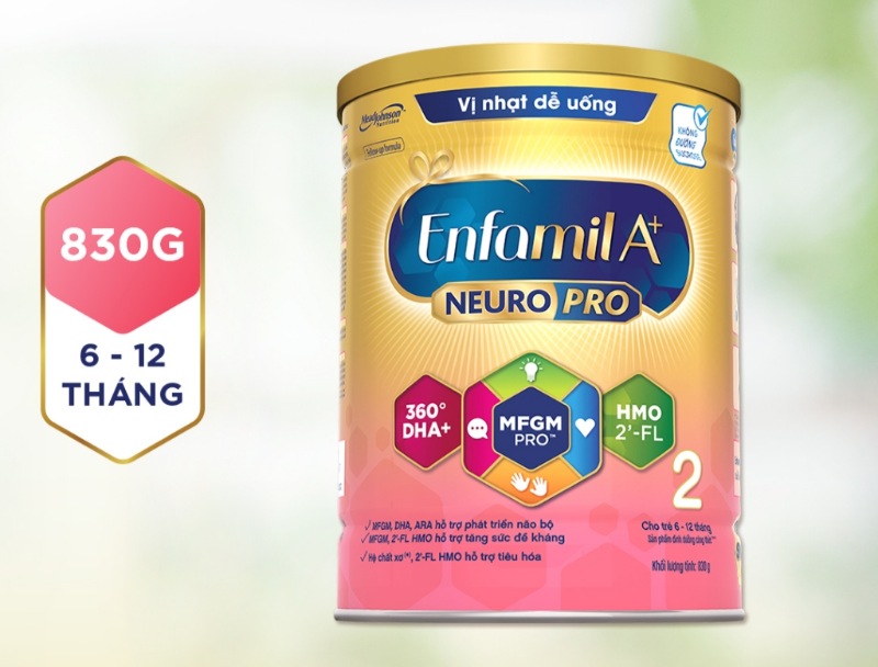 Sữa bột Enfamil A+ NeuroPro 2 Vị thanh mát 2'FL HMO với dưỡng chất DHA & MFGM cho trẻ từ 6 - 12 tháng tuổi - 830g