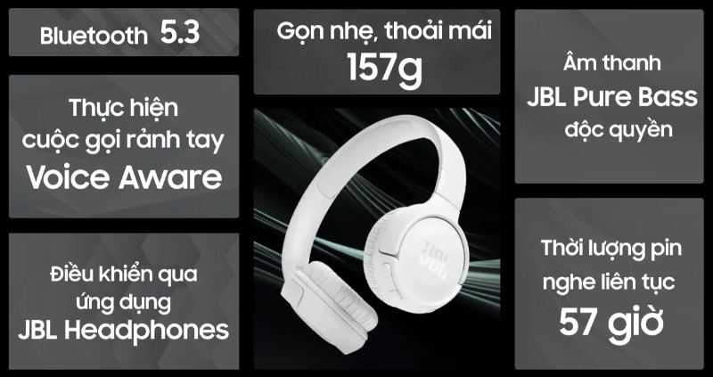 Tai nghe chụp tai Bluetooth JBL Tune 520BT