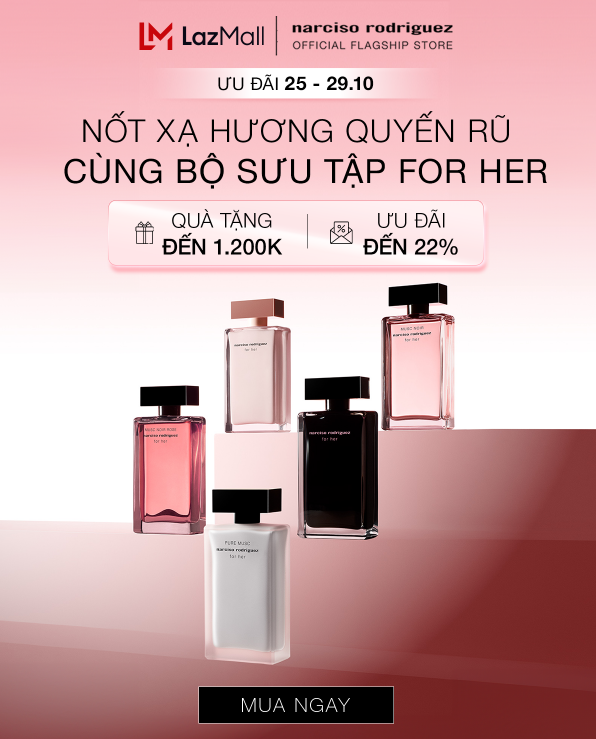 Narciso Rodriguez là thương hiệu nước hoa đình đám tới từ Mỹ, được rất nhiều chị em Việt ưa chuộng. Trong đó, thương hiệu nổi bật bởi các dòng nước hoa hương tự nhiên, khá nịnh mũi và được tinh chế tỉ mỉ. Đặc biệt BST For Her (dòng dành cho nữ) của hãng luôn nằm trong top các sản phẩm bán chạy nhất nhì thị trường.