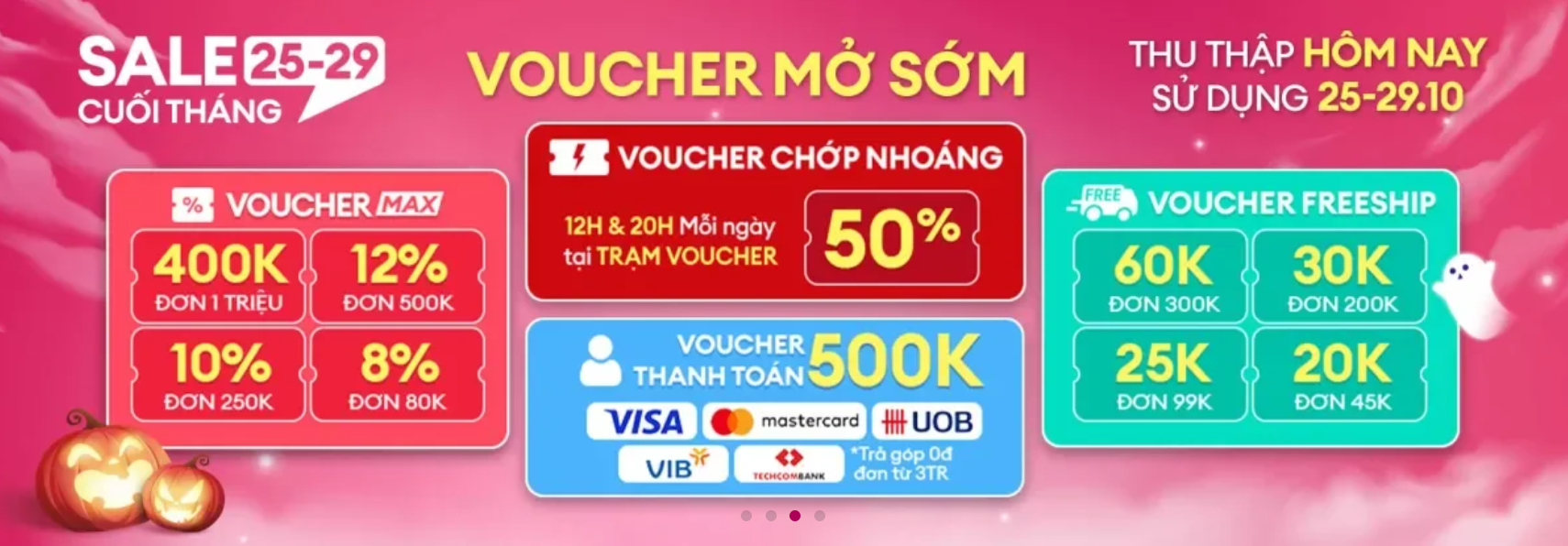 Tới với Lazada sale Halloween năm nay, mức giá mà bạn mua có thể sẽ còn rẻ hơn nhờ các ưu đãi khủng từ thương hiệu như: