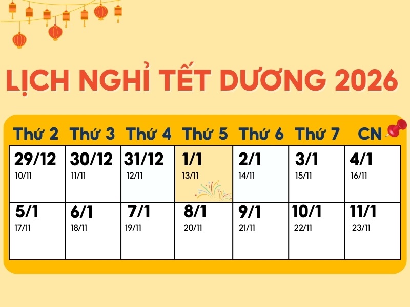 >> Xem thêm: Tổng hợp các mẫu thông báo nghỉ Tết Dương lịch 2026 chuẩn nhất
