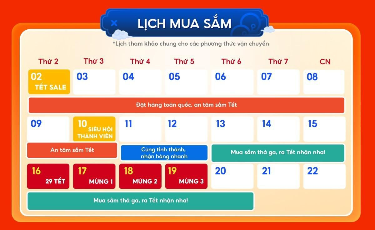 Từ 12/02 trở đi: Mua sắm bình thường, hàng Tết giao tùy thời điểm.