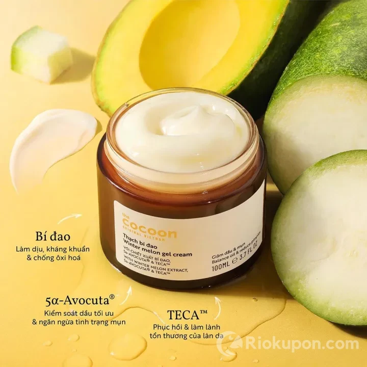 Kem dưỡng ẩm Cocoon có thành phần chính từ chiết xuất bí đao, 5A-AVOCUTA (hoạt chất chiết xuất từ dầu bơ), TECA ™,…. Với thành phần trên, kem dưỡng giúp đẩy nhanh quá trình phục hồi, làm lành da nhanh chóng, tăng cường sản sinh Collagen. Chất kem có kết cấu mỏng nhẹ, tan nhanh vào da giúp mang lại độ ẩm cân bằng, giảm lượng dầu thừa và cải thiện mụn hiệu quả.