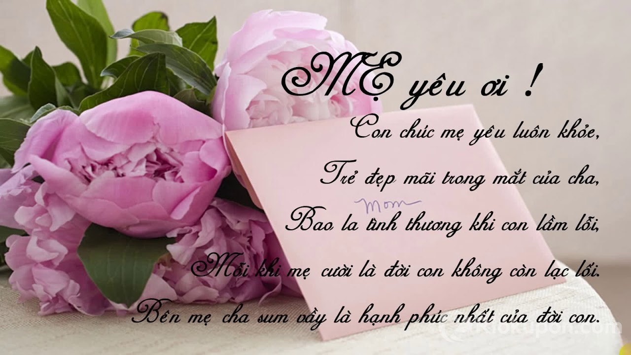 - Chúc mẹ 8/3 vui vẻ! Chúc mẹ của con luôn trẻ đẹp, luôn mạnh khỏe và hạnh phúc thật nhiều. Con yêu mẹ!