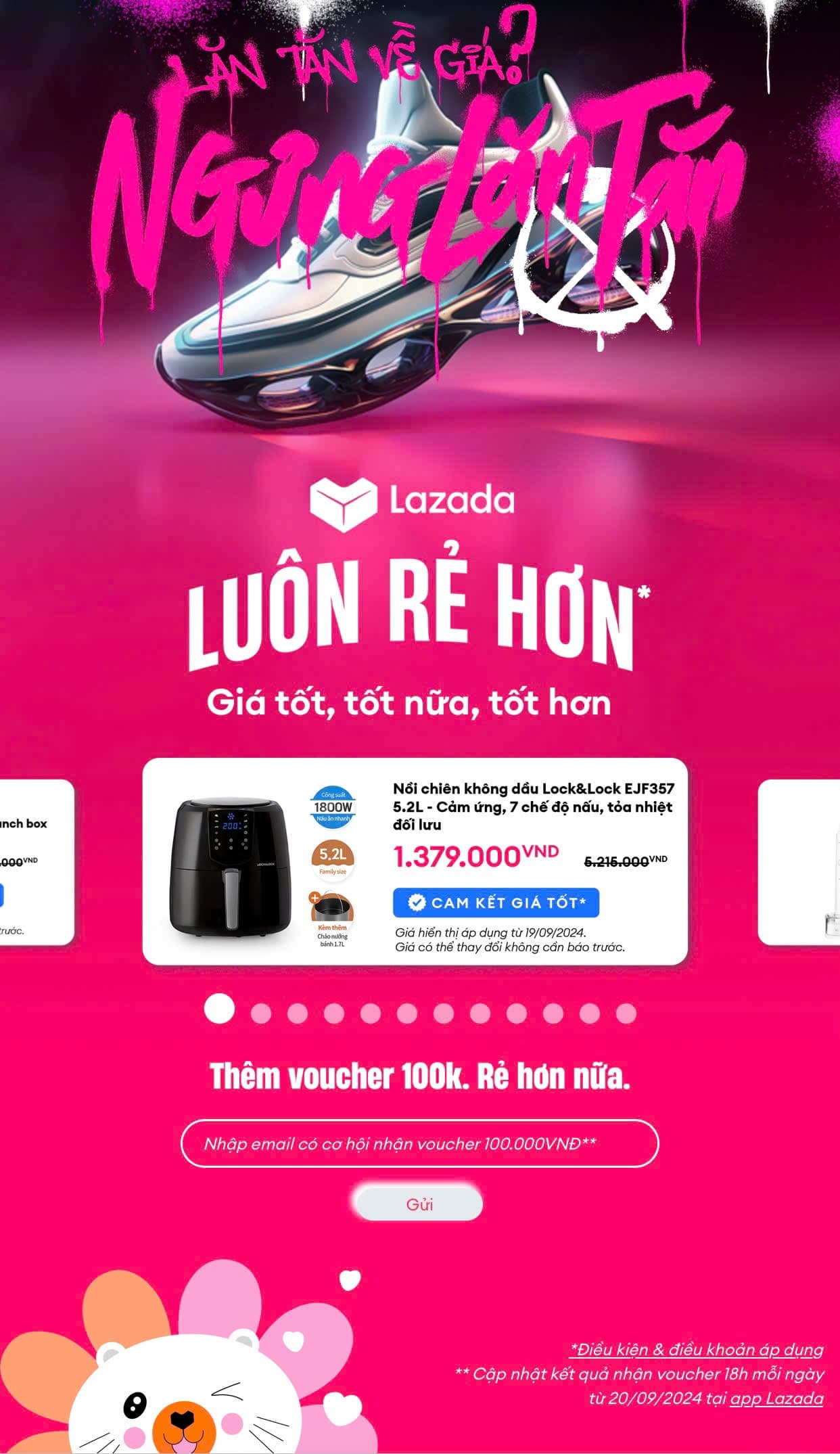 Voucher 100K từ chương trình Ngưng lăn tăn Lazada áp dụng cho đơn hàng có giá trị từ 250K. Hạn cuối sử dụng voucher là ngày 12.10.2024.
