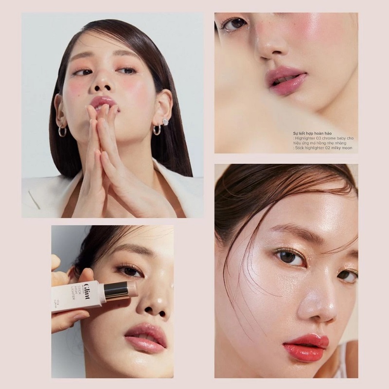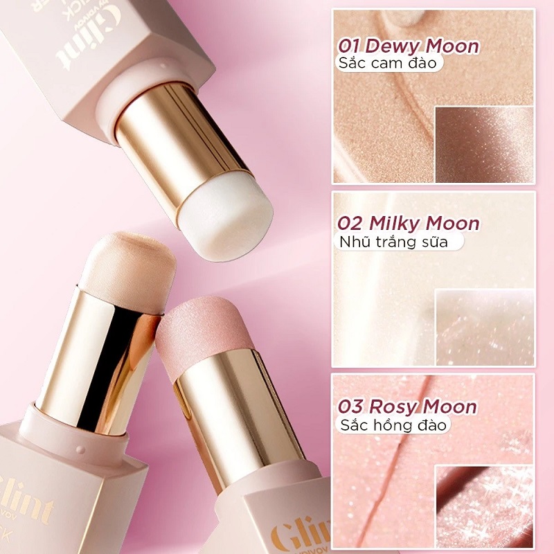 Một trong những bước quan trọng trong make-up lễ hội chính là tạo sự rạng rỡ cho gò má. Sử dụng nhũ bắt sáng Glint, bạn có thể thoa lên vùng gò má, sống mũi và dưới lông mày để tạo điểm nhấn ánh sáng nổi bật. Đặc biệt, màu Rosy Moon sẽ giúp làn da bạn thêm hồng hào, Milky Moon mang đến vẻ sáng trong, còn Dewy Moon là lựa chọn hoàn hảo cho phong cách cam đào nhẹ nhàng, trẻ trung.