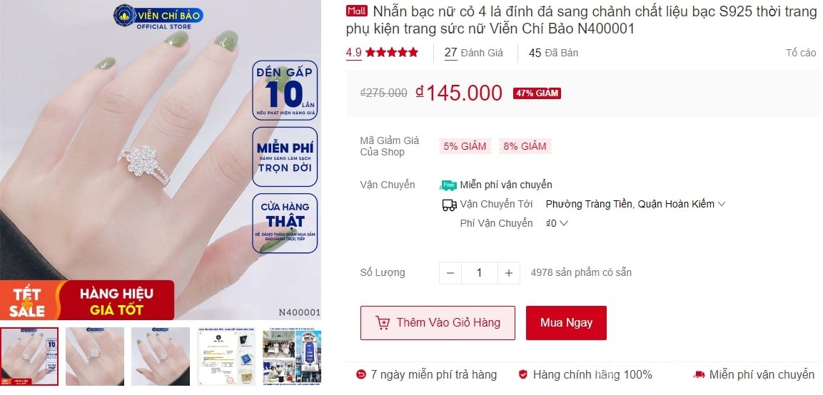 - Bước 2: Tìm kiếm phụ kiện, trang sức và xem chi tiết sản phẩm.