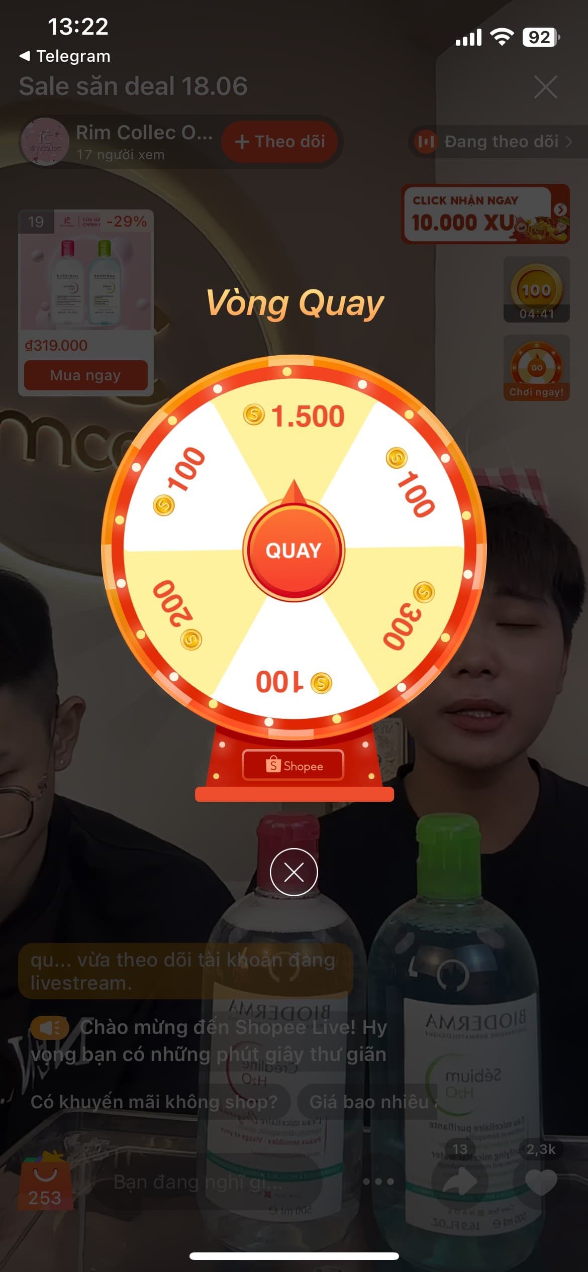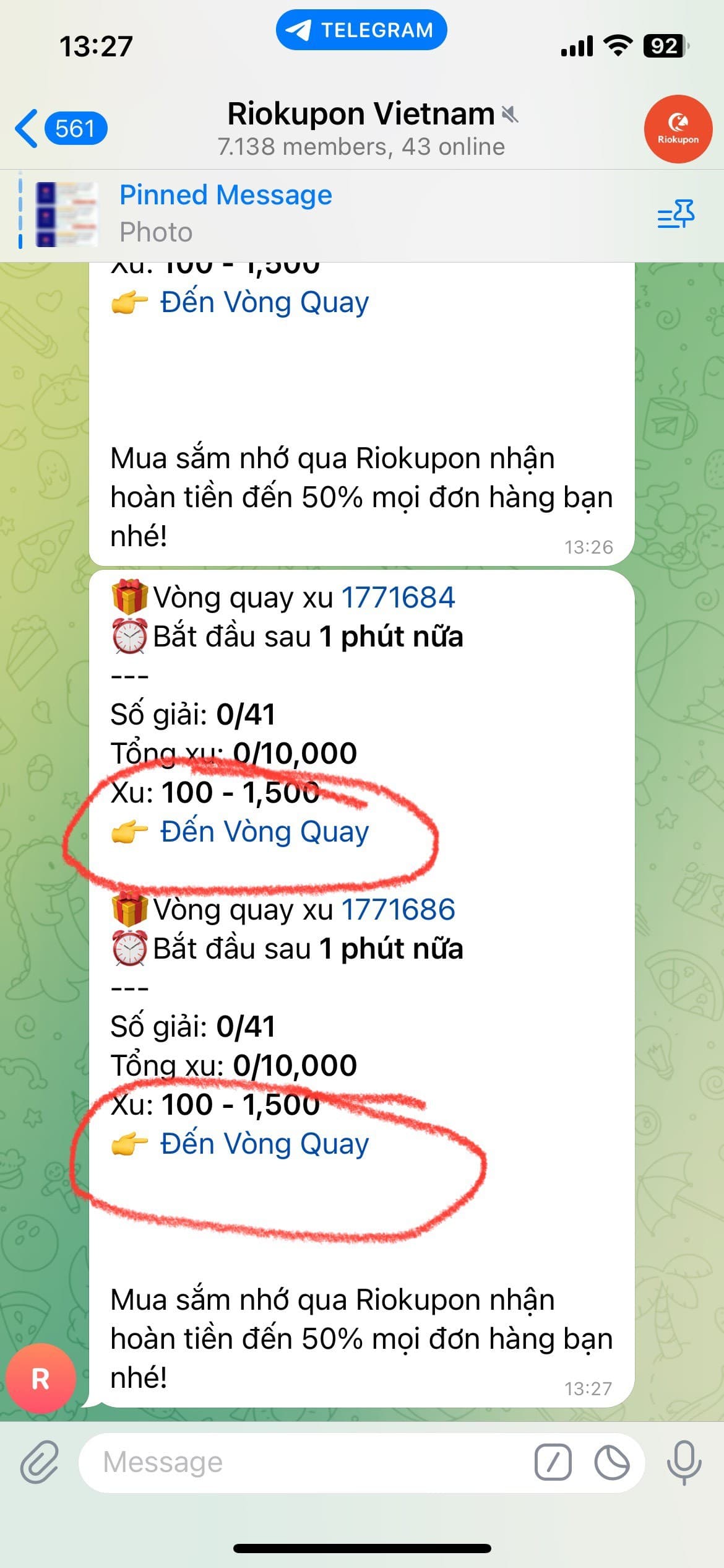 Nếu trong thời gian bạn bị giới hạn xu trên Shopee Live, thì có thể tham gia group Riokupon Vietnam trên Telegram để quay vòng quay nhận xu mỗi ngày.