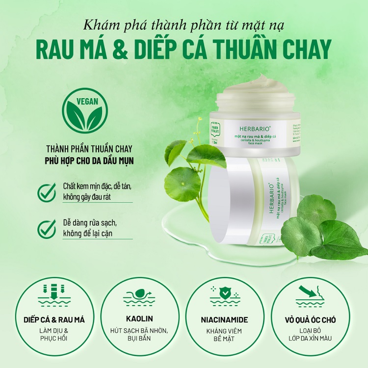 - Mặt nạ rau má & diếp cá giảm dầu, mụn Herbario