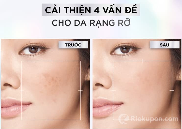 - Sự kết hợp giữa các thành phần giúp cải thiện rõ 4 vấn đề về da mặt: Thâm nám, xỉn màu, khô ráp và không đều màu, đem lại làn da trắng sáng rạng rỡ.