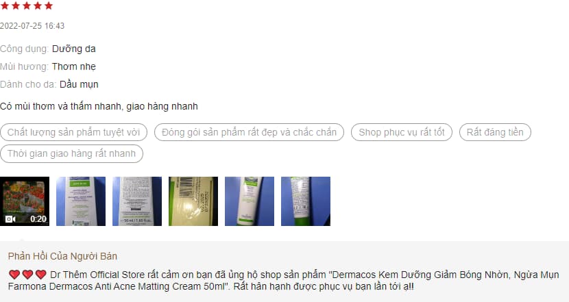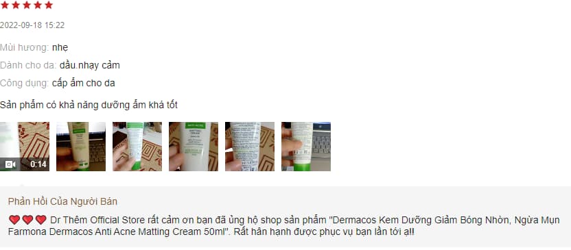 Review kem dưỡng Dermacos Anti-Acne Matting Cream