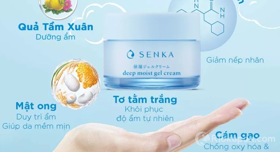 Senka Deep Moist Gel Cream là sản phẩm có công dụng 2 trong 1, vừa là kem dưỡng ẩm vừa là mặt nạ ngủ. Cấp ẩm chuyên sâu và khóa ẩm tuyệt đối, làm dịu và mát da ngay tức thì, khóa các dưỡng chất từ những bước skincare trước, không gây kích ứng cho da. Sau khi thoa kem, bạn cảm nhận rõ sự thay đổi đó là da trở mêm mát dịu, ẩm mịn không còn cảm giác căng rát do thời tiết lạnh da bị mất nước gây ra.