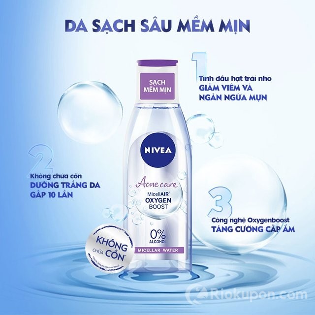 Nước tẩy trang Nivea Acne Care MicellAir Water được giới thiệu là dòng sản phẩm làm sạch da, ngừa mụn an toàn và hiệu quả nên được khách hàng Việt lựa chọn ngày càng nhiều. Nhưng sự thật thì sản phẩm tẩy trang này của hãng Nivea có đúng như lời đồn không. Mời các bạn cũng theo dõi bài viết này của Riokupon để biết được đáp án chính xác cho mình nhé.