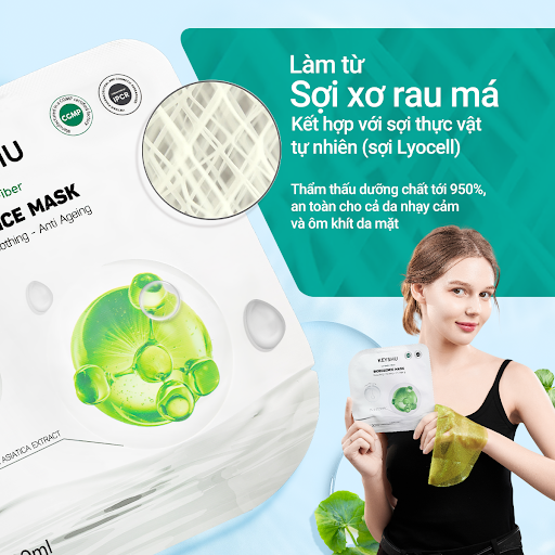 Mặt nạ Centella Fiber là dòng sản phẩm được làm từ vải không dệt, kết hợp giữa sợi xơ rau má và sợi Lyocell (Sợi thực vật) tự nhiên, giúp nuôi dưỡng da khỏe mạnh, an toàn. Mặt nạ không chỉ đem đến trải nghiệm thoải mái, ôm khít với nhiều kích cỡ khuôn mặt khác nhau mà còn giúp dưỡng ẩm sâu cho da, cung cấp các dưỡng chất giúp da mềm mịn, cải thiện các dấu hiệu lão hóa da cho da trẻ trung, căng bóng.