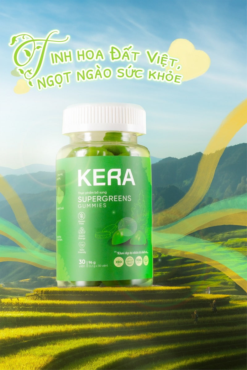 Kera là thương hiệu chuyên cung cấp các sản phẩm thực phẩm chức năng hỗ trợ sức khỏe, đặc biệt nổi bật với dòng viên uống bổ sung rau xanh Kera. Thương hiệu hướng đến việc mang lại giải pháp dinh dưỡng tiện lợi, giúp người bận rộn bổ sung vitamin, chất xơ từ rau củ một cách dễ dàng.