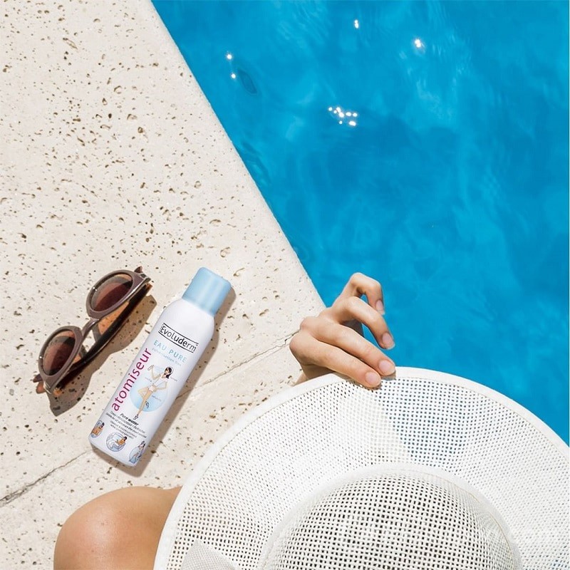 - Xịt khoáng Evoluderm giúp cấp ẩm cho làn da nhanh chóng, hiệu quả với mọi da ở các điều kiện như môi trường máy lạnh, trời quá nóng, sau khi tập thể dục thể thao đổ nhiều mồ hôi.