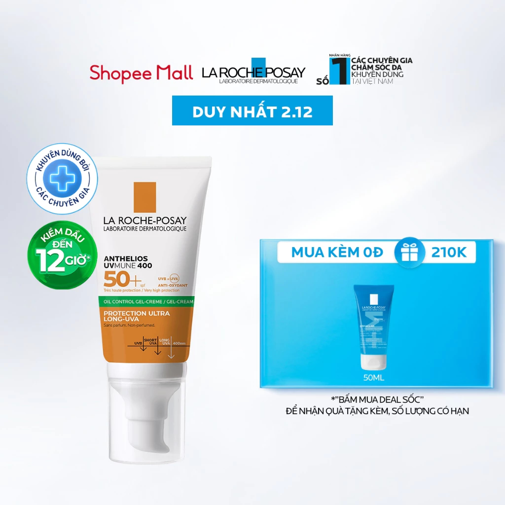 Kem chống nắng bảo vệ da chống tia UVA dài và kiềm dầu 12H Anthelios UVMUNE 400 Oil Control Gel Cream