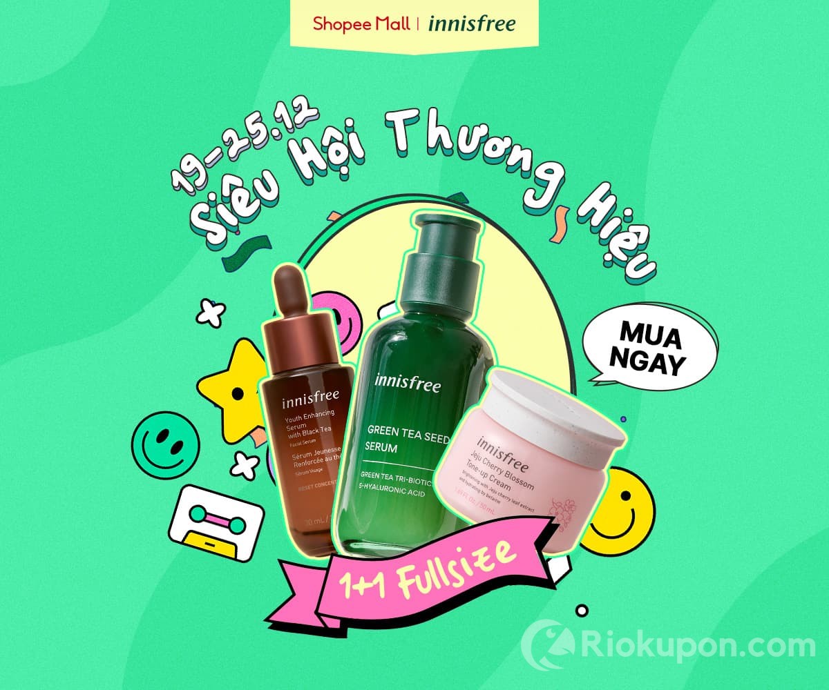 Innisfree tại Shopee 25.12 có rất nhiều ưu đãi hấp dẫn như: