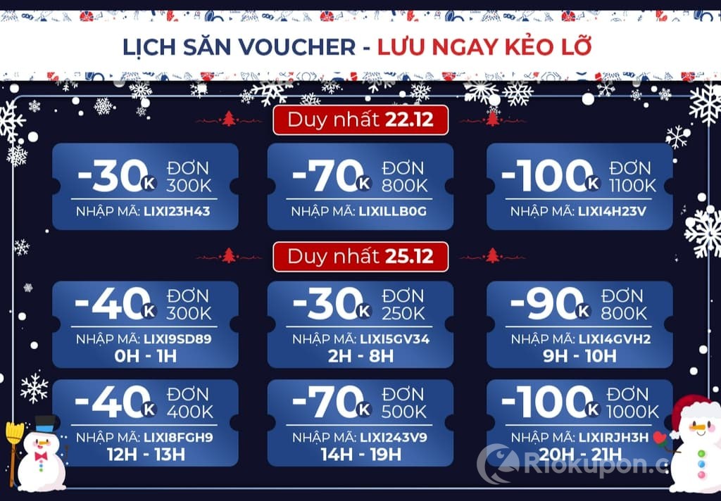 - Thời gian sử dụng được voucher: Bắt đầu từ 0h ngày 25.12