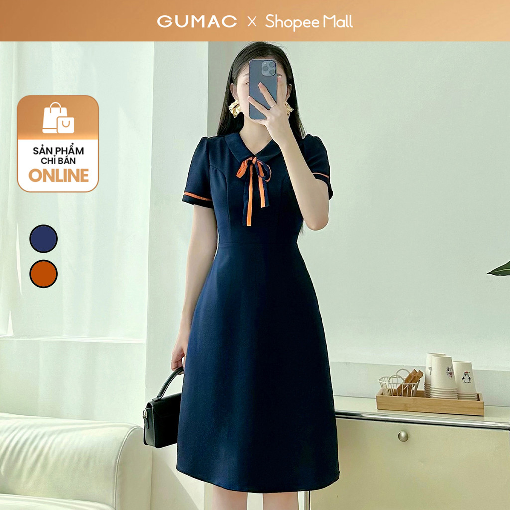 Đầm A nẹp tay phối nơ cổ LDE0614
