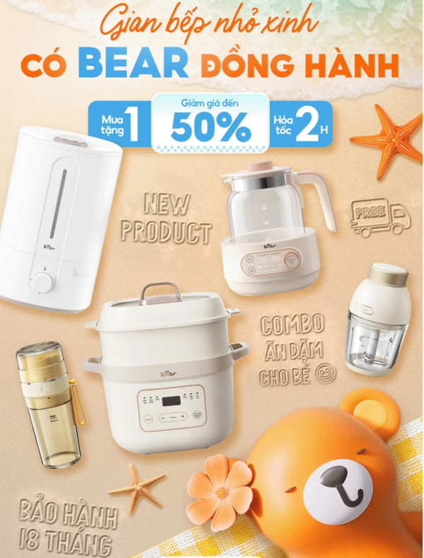 Bear là một brand đồ gia dụng Trung Quốc đã quá quen thuộc với nhiều người dùng Việt. Thương hiệu này sở hữu các ưu điểm như thiết kế xinh xắn, nhỏ nhắn, chất lượng ổn và giá thành dễ tiếp cận. Nổi bật của hãng phải kể đến các dòng nồi nấu chậm, nồi nấu cháo, máy xay hay máy đun nước..