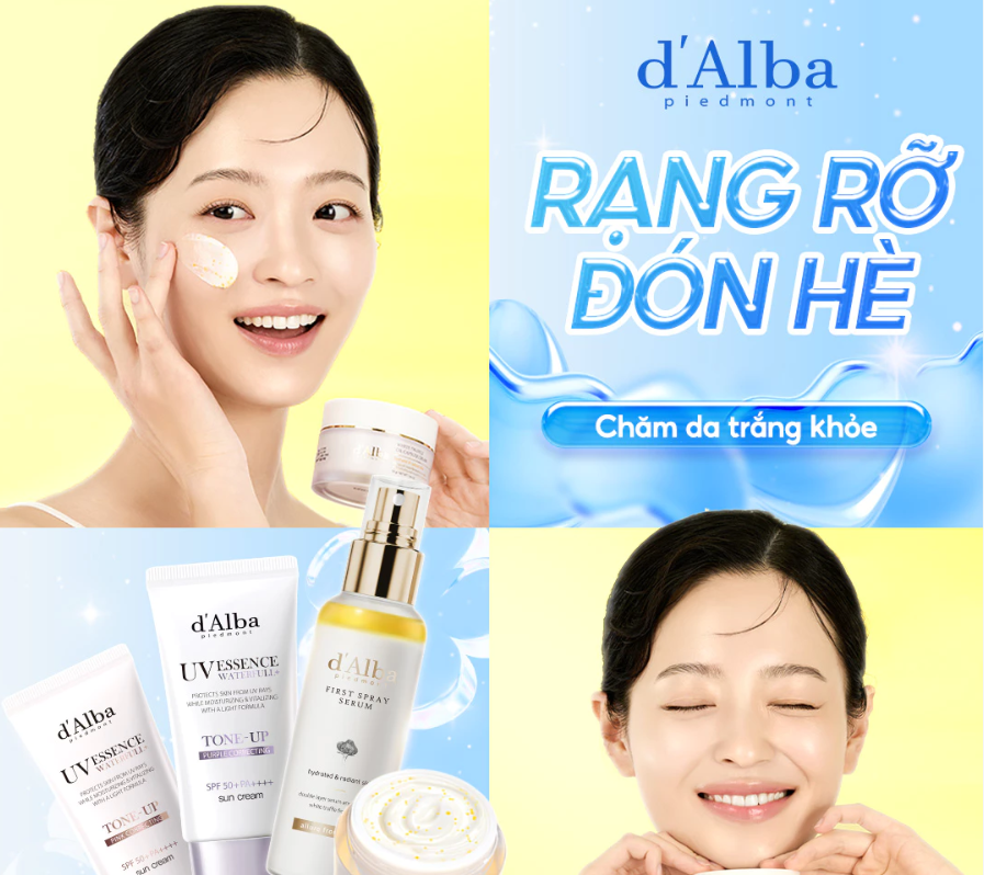 Nổi lên trong giới làm đẹp genZ trong vài năm trở lại đây, d'Alba là thương hiệu skincare trẻ bắt nguồn từ Hàn Quốc. Nhãn được yêu thích nhờ các dòng sản phẩm như xịt khoáng căng bóng da, kem chống nắng nâng tông và mặt nạ dưỡng. Rất nhiều KOL đã sử dụng và cho feedback tốt về thương hiệu này.