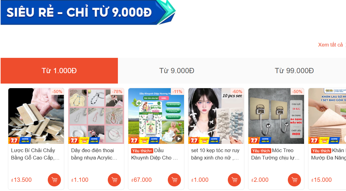 Trong 7.7, bạn có thể tìm thấy rất nhiều các sản phẩm “best-seller” được bán với giá chỉ từ 9k, thậm chỉ là 1k.