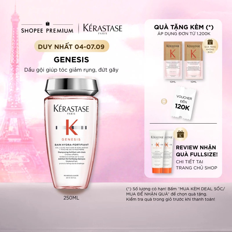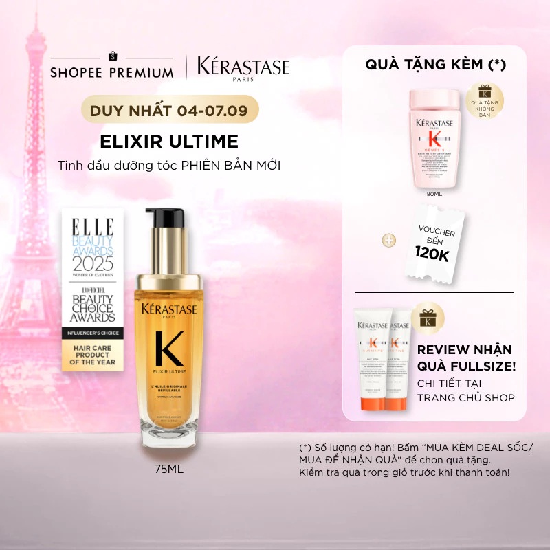 Kerastase, thương hiệu chăm sóc tóc cao cấp, cũng góp mặt trong Shopee sale 9.9 với nhiều ưu đãi đáng chú ý. Từ dầu gội, dầu xả đến serum dưỡng tóc, tất cả đều được giảm giá, kết hợp voucher freeship và flash sale trong khung giờ vàng. Đây là dịp hiếm có để bạn nâng cấp bộ sưu tập chăm sóc tóc tại nhà với chi phí tiết kiệm.