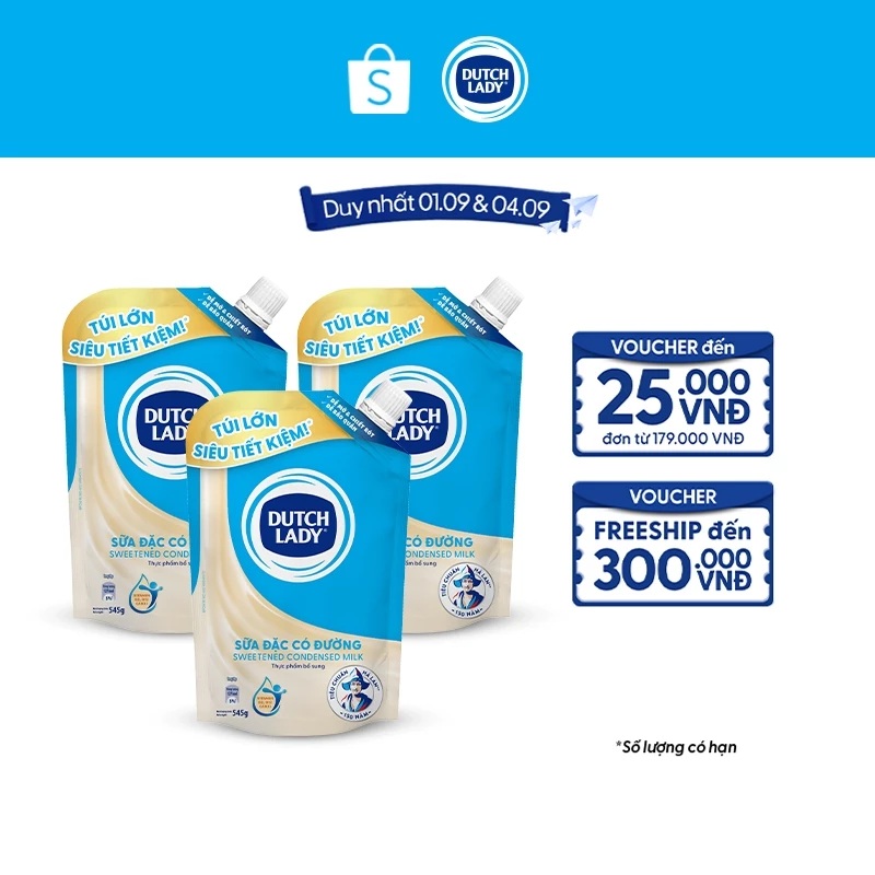 Combo 3 túi kem đặc có đường Dutch Lady (545g/túi)