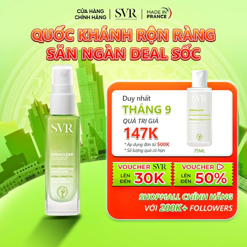 Trong Shopee sale 9.9, các sản phẩm chăm sóc da và mỹ phẩm SVR được giảm giá cực hấp dẫn. Đây là cơ hội vàng để bạn sở hữu các dòng kem dưỡng, serum và sữa rửa mặt nổi tiếng với mức giá ưu đãi chưa từng có. Các deal từ SVR thường đi kèm voucher giảm giá và freeship, giúp trải nghiệm mua sắm trở nên tiết kiệm và tiện lợi hơn bao giờ hết.