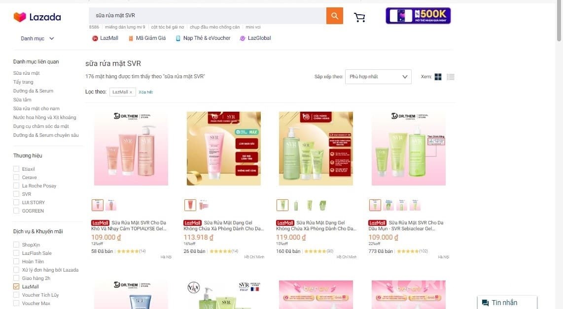 Sữa rửa mặt SVR có có giá bao nhiêu?