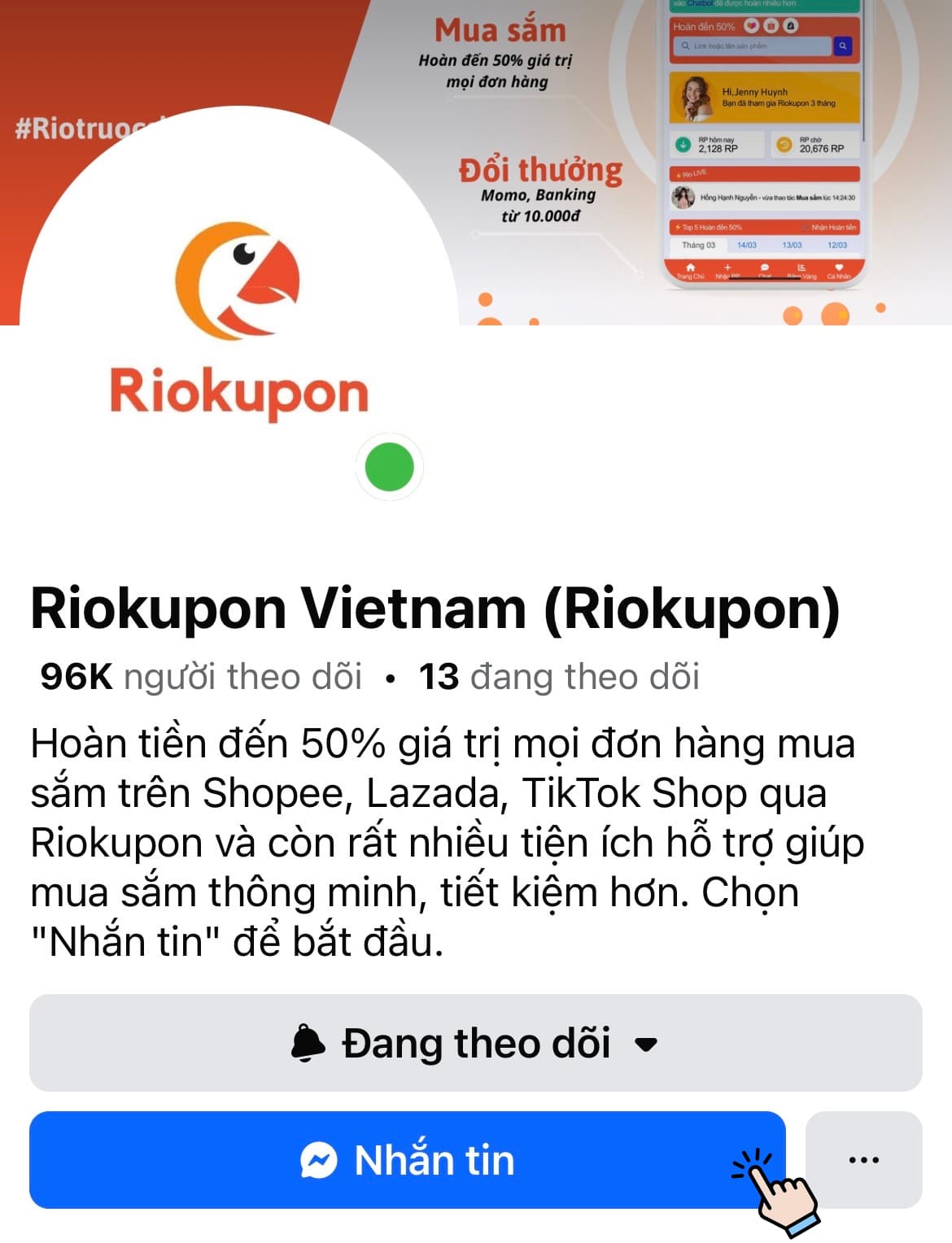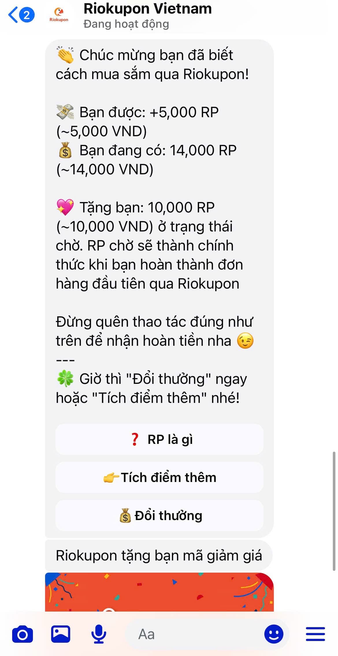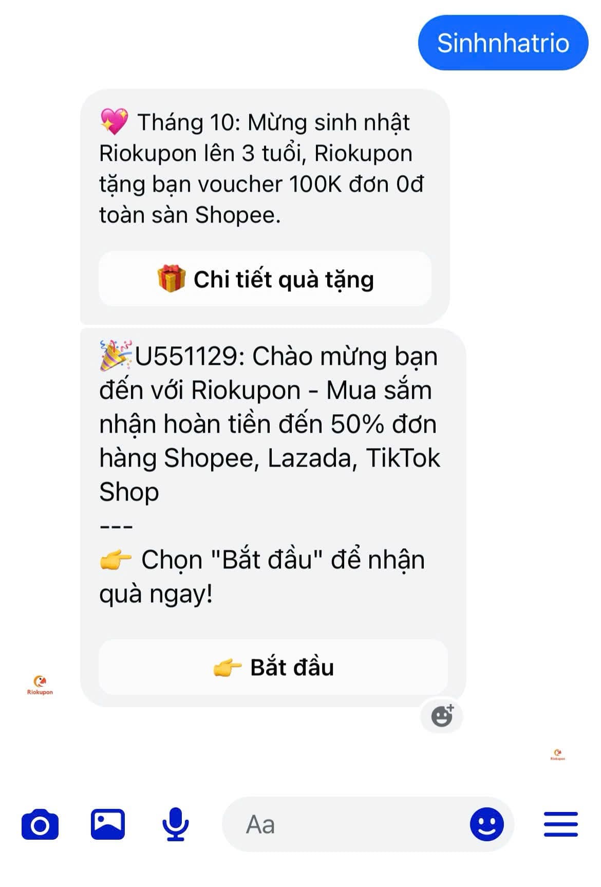 👉 Để bắt đầu tham gia vào Riokupon Vietnam chọn "Nhắn tin" rồi nhắn "sinhnhatrio" ngay!