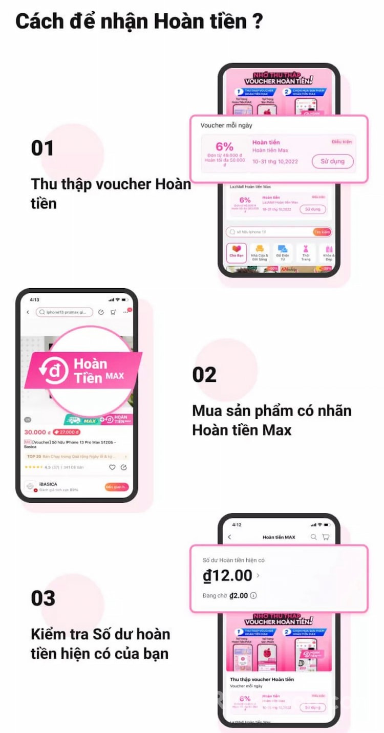 Để được nhận hoàn tiền từ chương trình Hoàn tiền Max Lazada, bạn chỉ cần thực hiện theo quy trình như sau: