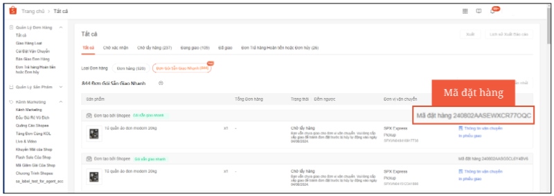 - Truy cập Kênh Người Bán (Seller Centre): Truy cập vào Seller Centre qua trình duyệt hoặc ứng dụng Shopee Seller. Đăng nhập tài khoản shop và điều hướng đến phần Quản lý đơn hàng, sau đó chọn Cài đặt vận chuyển để tìm chương trình Gói Sẵn Giao Nhanh Shopee.