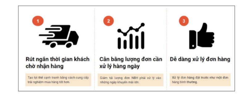 - Rút ngắn thời gian giao đi: Đơn hàng được đóng gói sẵn, Shopee chỉ việc giao nhanh khi có đơn. Khách nhận hàng sớm hơn, tăng trải nghiệm mua sắm.