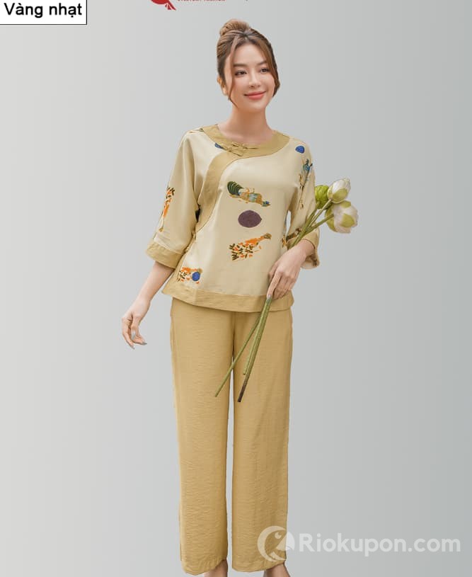 Đồ bộ nữ Cardina cao cấp đi chùa áo lụa Mango