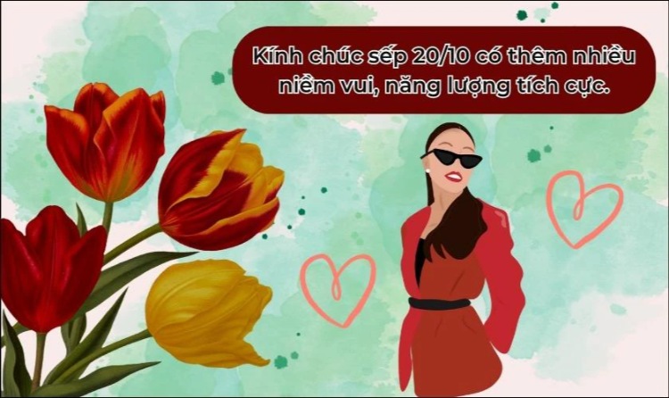 - Nhân ngày Phụ nữ Việt Nam 20-10, em chúc sếp luôn giữ được sự bản lĩnh, tinh tế và phong thái tự tin đáng ngưỡng mộ.