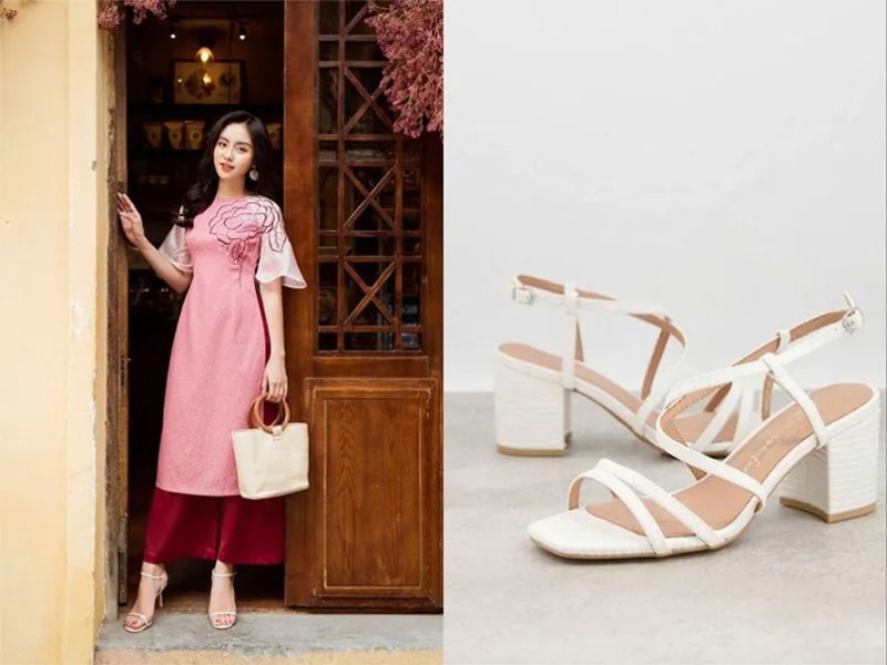 Giày dép đóng vai trò quan trọng trong việc hoàn thiện set đồ áo dài. Giày cao gót mũi nhọn giúp tôn dáng, tạo cảm giác cao ráo và uyển chuyển. Nếu ưu tiên sự thoải mái, sandal quai mảnh hoặc dép đế thấp thanh lịch cũng là lựa chọn phù hợp. Nên chọn giày có màu sắc trung tính hoặc cùng tone với áo dài để tổng thể trông hài hòa và sang trọng.