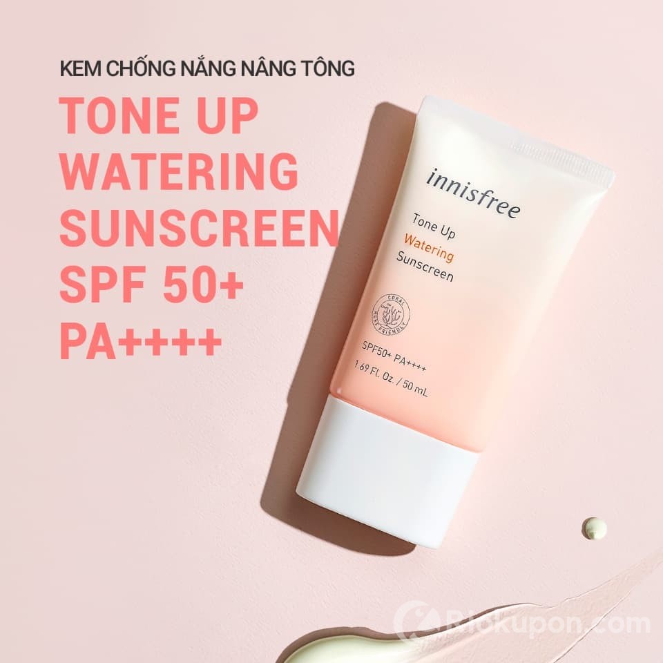 Innisfree Tone Up Watering Sunscreen là một loại kem chống nắng dạng kem của hãng Innisfree, đến từ Hàn Quốc. Sản phẩm có khả năng chống nắng đa năng với khả năng chống nắng, cung cấp độ ẩm cho da, giúp da sáng mịn và tươi trẻ hơn.
