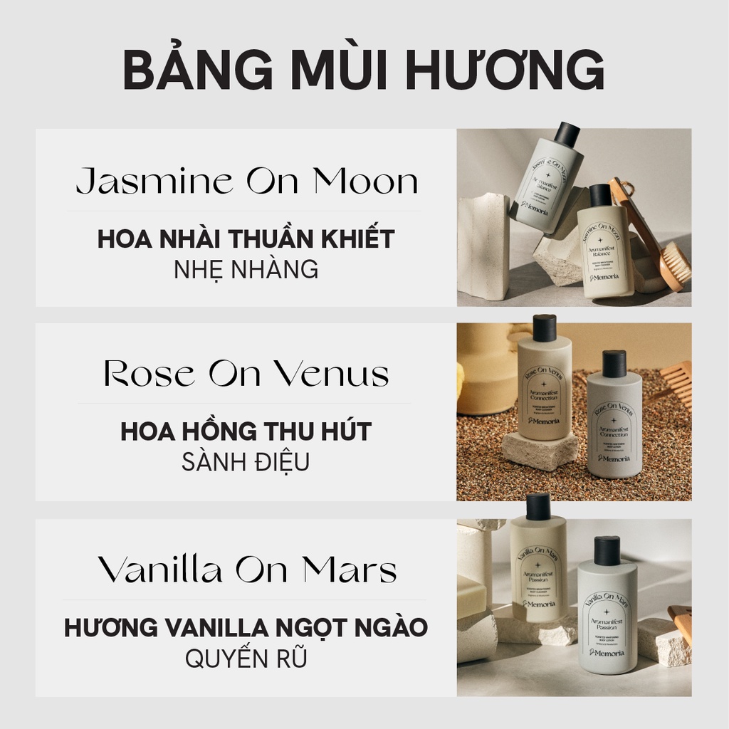 Một trong những dòng sữa tắm hương nước hoa đang nổi đình đám dạo gần đây chính là De Memoria. Các thành phần trong sữa tắm được chiết xuất từ thiên nhiên như hoa hồng, hoa nhài, mật ong, vanilla có độ lành tính cao, mùi hương nhẹ nhàng, thuần khiết, sang trọng và quyến rũ.