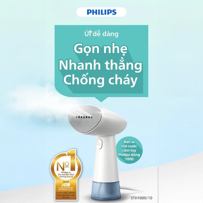 Philips mang đến mẫu bàn ủi hơi nước cầm tay với công nghệ phân bổ hơi đều, giúp bảo vệ chất liệu vải và giảm thiểu tình trạng nhăn gấp. Mẫu này nằm trong danh sách bàn ủi hơi nước cầm tay tầm dưới 600K nhưng vẫn giữ được chất lượng và độ bền ấn tượng từ thương hiệu nổi tiếng. Kiểu dáng công thái học cùng tay cầm chắc chắn giúp việc ủi đồ trở nên nhẹ nhàng hơn, ngay cả với các loại vải dày.
