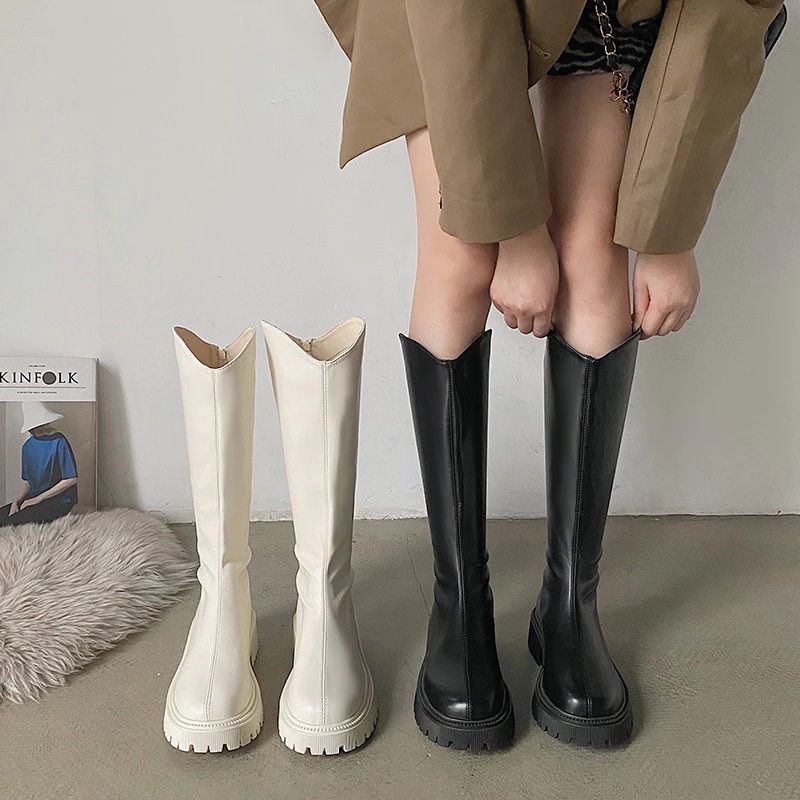 - Giày boot nữ cổ cao tới gối gót vuông cao 5cm