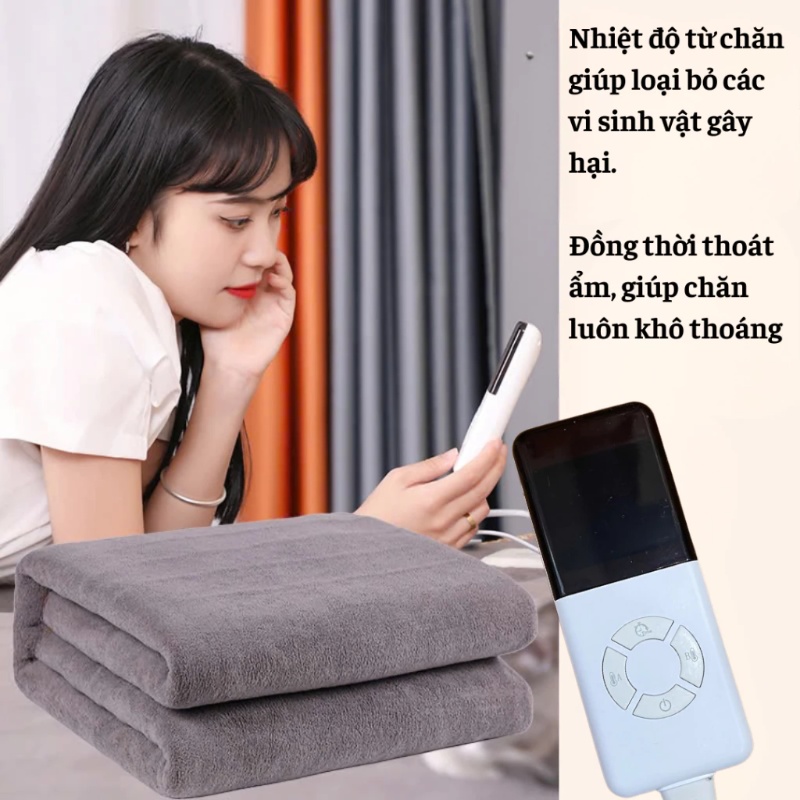 - Chăn điện sưởi ấm 2 vùng nóng độc lập cao cấp, 9 mức nhiệt